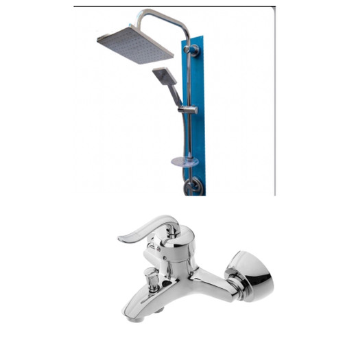ست شیر حمام قاجاری بامبو کروم با علم دوش دوکاره استیل مربعی