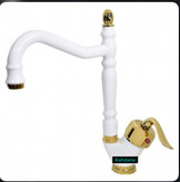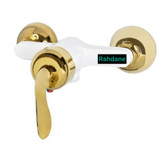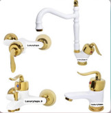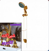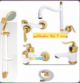 فول ست شیرآلات به همراه علم دوش و شلنگ توالت مدل قاجاری بامبو سفیدطلایی مجموعه ۶ تیکه
