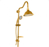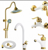 ست ۶ تکه شیرآلات سفیدطلایی مدل قاجاری عصایی به همراه علم دوش شیپوری و شلنگ توالت / ارسال به سرتاسر ایران