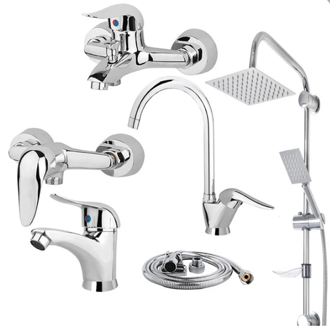 ست ۶ تکه شیرآلات اکونومی مدل قهرمان با علم دوش و شلنگ توالت