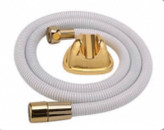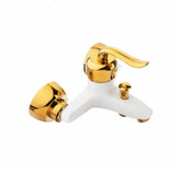 ست شش تکه شیرآلات سفیدطلایی قاجاری بامبو با روشویی بلند و علم دوش استیل و شلنگ توالت اعلای ریزبافت برنجی