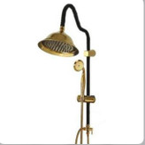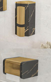 ست ۹ تکه شیرآلات مشکی طلایی قاجاری بامبو به همراه علم دوش شیپوری،فلاش تانک،جامایع و جای دستمال توالت