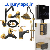 مجموعه ۹ عددی شیرآلات مشکی طلایی قاجاری بامبو