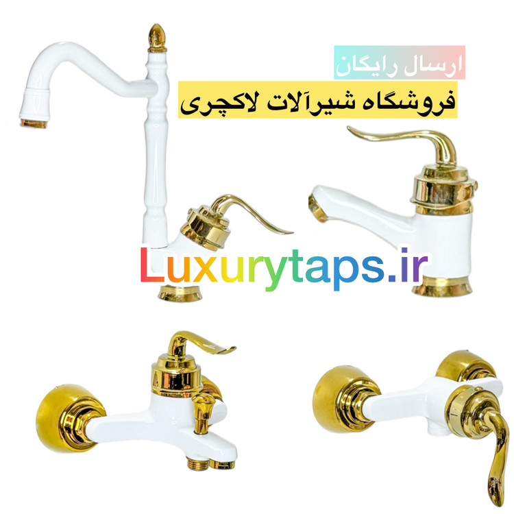ست شیرآلات سفیدطلایی قاجاری بامبو آرنا مجموعه ۴ عددی
