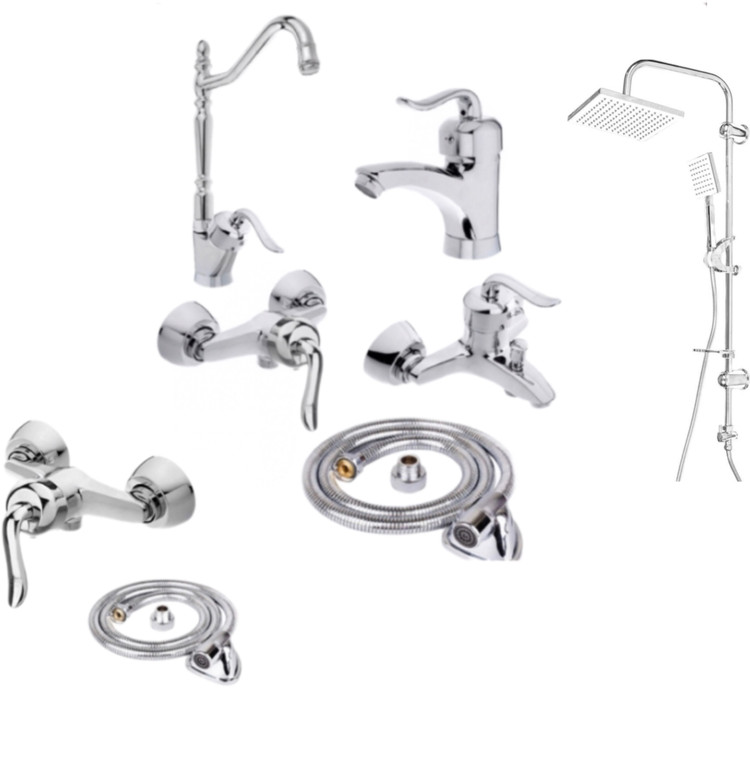 ست ۸ تکه شیرآلات قاجاری بامبو به همراه علم دوش دوکاره و شیر توالت اضافه و ۲ عدد شلنگ توالت
